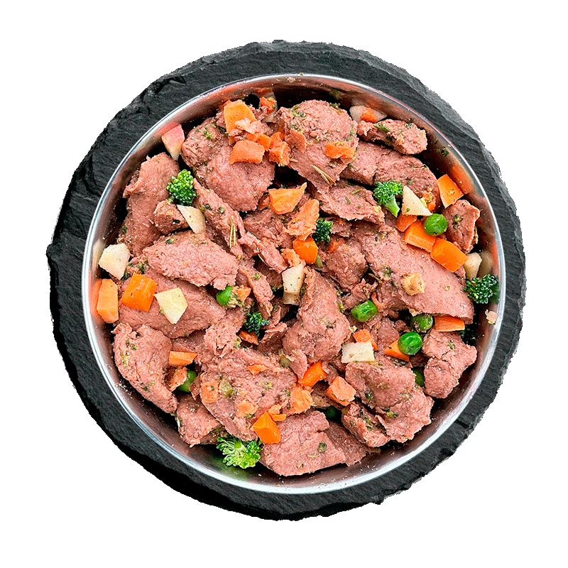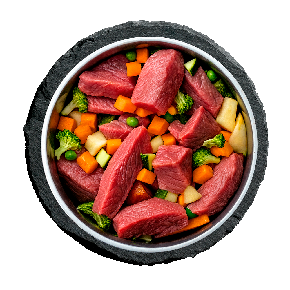High-quality meat and organ meats are gently steam-cooked at low temperatures. Only afterwards do we mix in various blanched vegetables, premium oils, and natural minerals. Developed with veterinarians and made with love.